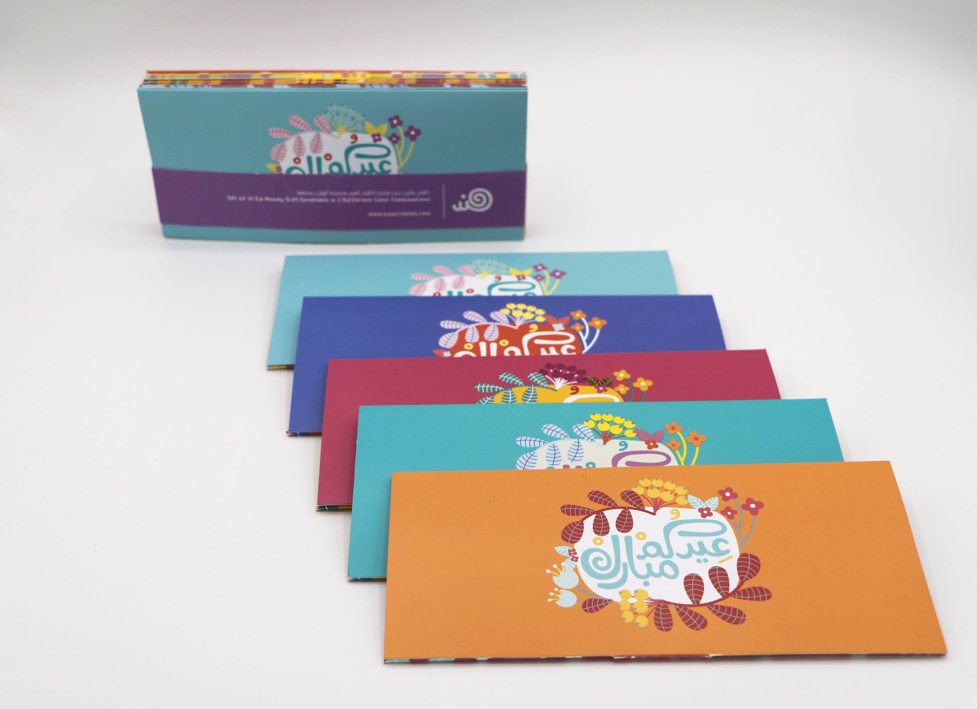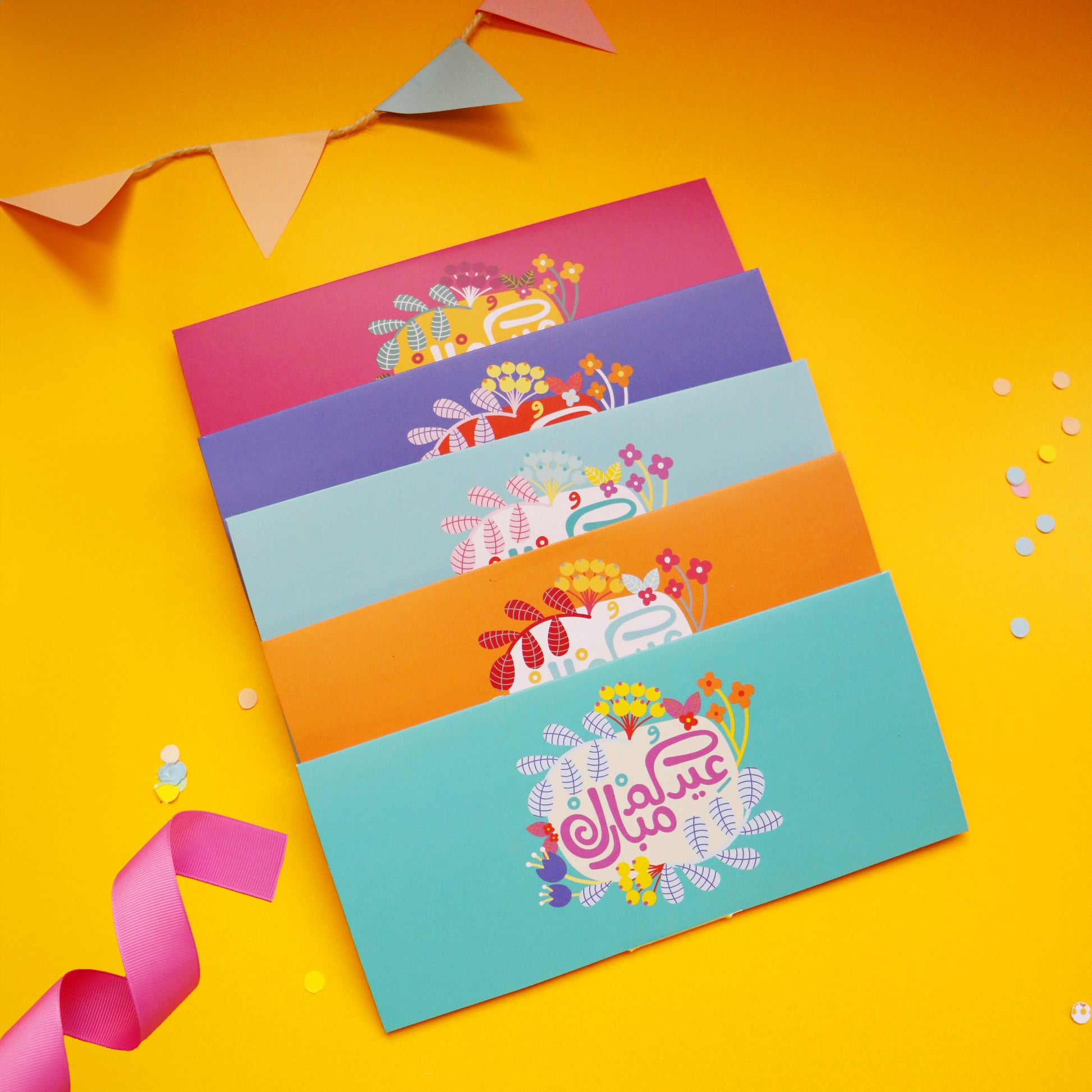 .مجموعة من أظرف الهدايا النقدية (العيادي) مصممة بألوان ونقوش مُبهجة وجميلة