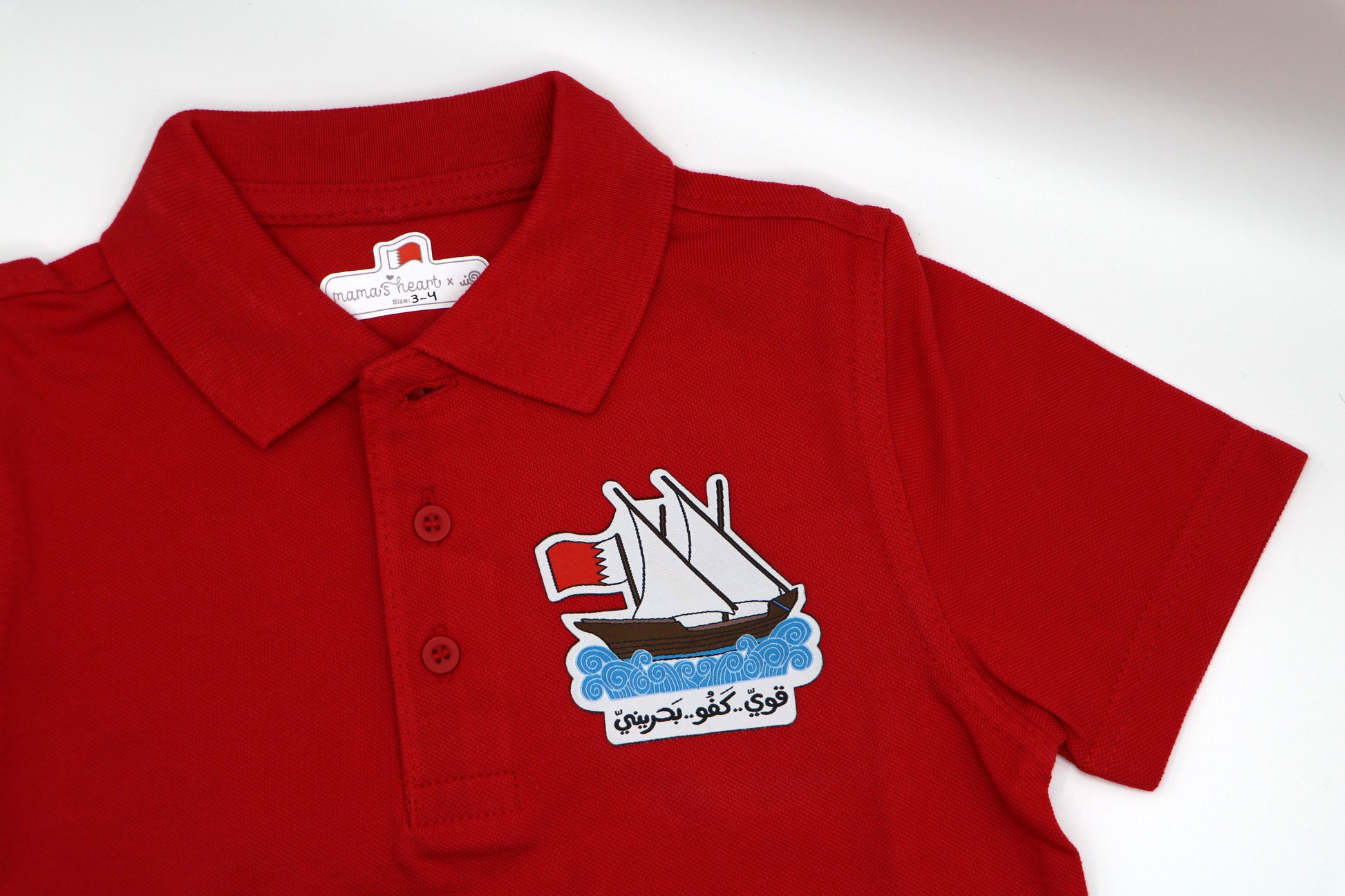 تيشيرت بولو أحمر مصنوع ١٠٠٪ من القطن مع تصميم مطرز على الصدر للأولاد
